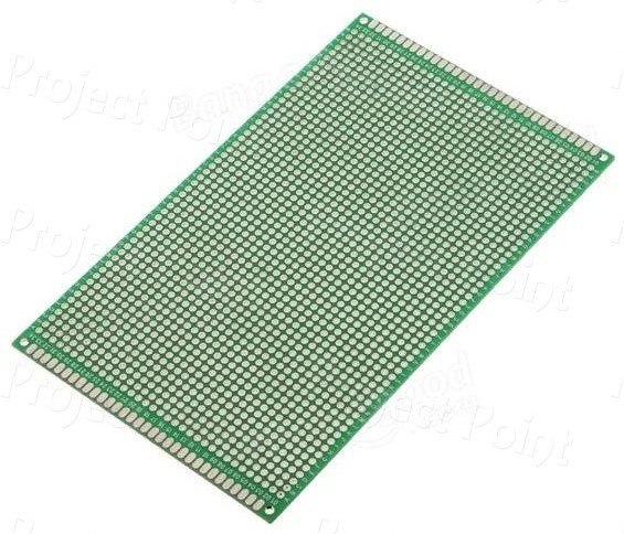 This is a 9 x 15 cm Universal PCB Prototype Board Single-Side High-quality universal prototyping board with standard 2.5mm (0.1 inches) spacing through holes. High-quality 9 x 15 cm FR4 material, Single-sided, HASL, CNC drilled.