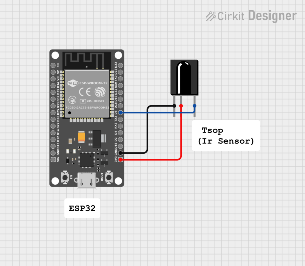 A TSOP sensor (e.g., TSOP1838) is an IR receiver module that detects infrared signals and converts them into digital output readable by microcontrollers like ESP32.