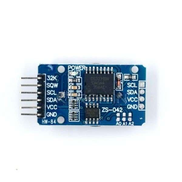 DS3231 Module is a Bread Board friendly extremely precise I2C real time clock Module. This module made using DS3231 RTC and AT24C32 EEPROM integrated with temperature compensated crystal oscillator. It also has a built in comparator which monitors the status of VCC to detect power failures and to automatically switch to backup power supply. AT24C32 provides 32,768 bits of serial EEPROM organized as 4096 words of 8 bits each. This gives you 32Kb of non-volatile memory for your projects. This module can be easily interfaced with Arduino Boards, Raspberry Pi and all Microcontrollers.